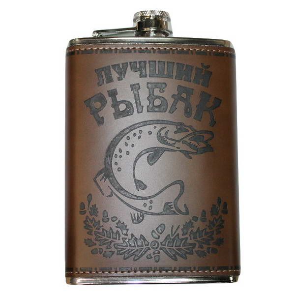 Фляжка 9 oz 270мл, нерж с кожзамом, картинка лучший рыбак