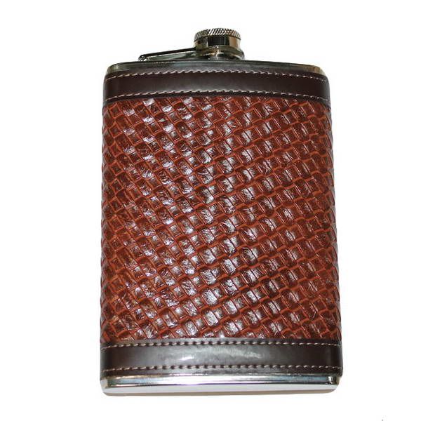 Фляжка 9 oz 270мл, нерж с кожзамом, плетенка
