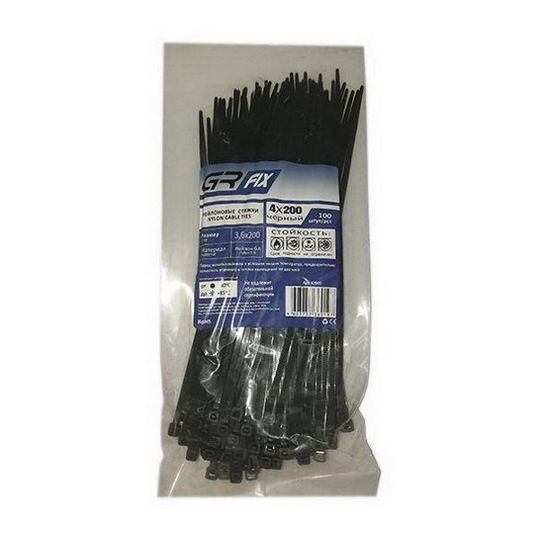 Хомут нейлоновый 4*200 (100шт) черный