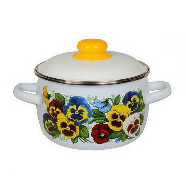 Кастрюля 2л сфер белая с рис Анютины глазки (1RC161M)