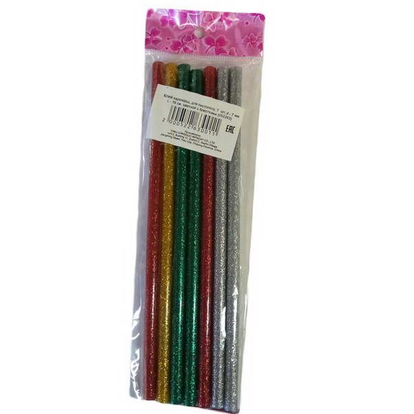 Клей пистолетный d-7мм, L-18см, 7шт ЦВЕТНОЙ с блестк