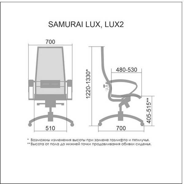 | **Высота сиденья в верхнем и нижнем положении может быть изменена, в зависимости от модели применяемого газ-лифта. | ||||||