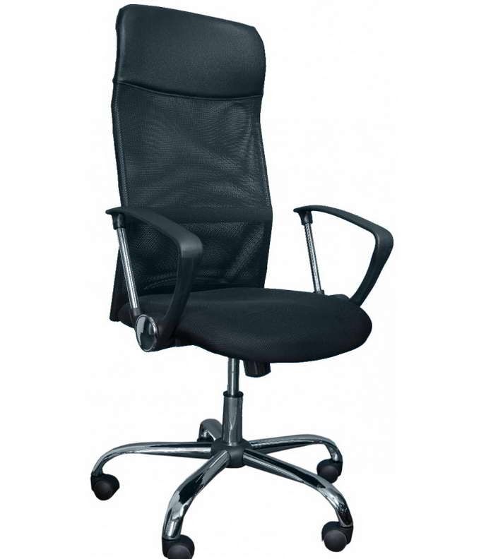 Кресло выполнено из кожзаменителя и ткани типа "Сетка" черного цвета и имеет следующие характеристики: