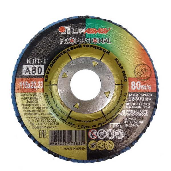 Круг шлифовальный лепестковый плоский 115*22 А80 Луга
