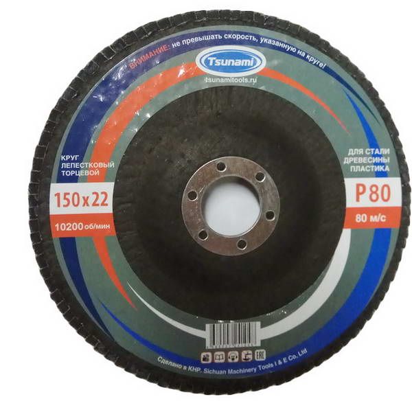 Круг шлифовальный лепестковый плоский 150*22 А80 TSUNAMI