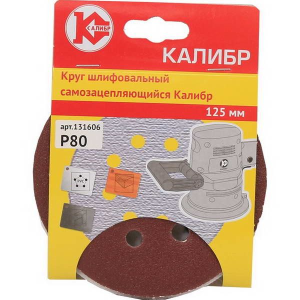Круг шлифовальный липучка с отверстием 125мм Калибр Р80