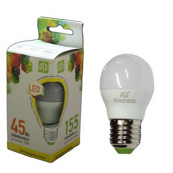 Лампа диод ASD Е27-5W 3000К 400Лм шарик Р45