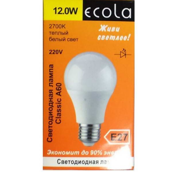 Лампа диод Ecola Е27-12W 2700К А60
