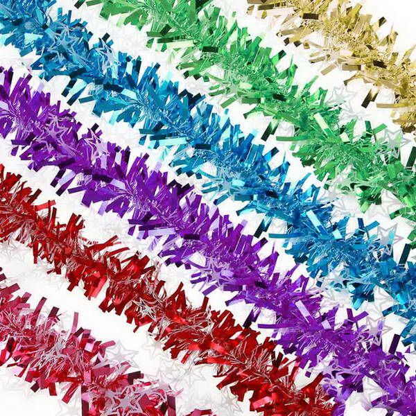 Мишура 200х9см с белыми звездами ПВХ 6 цветов СНОУ БУМ
