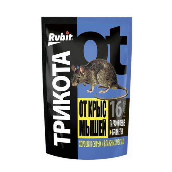 Парафиновый брикет от грызунов Rubit ТриКота 16 доз, 160 г 49377 разработаны для применения во всех влажных средах. Уничтожают грызунов в садах , огородах, погребах, подвалах, канализационных сетях и подземных сооружениях, где обычные приманки перестают действовать. Парафин сохраняет эффективность формулы в течении длительного времени.