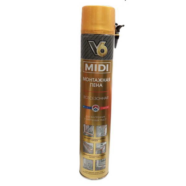 Пена монтажная V6 MIDI 560гр всесезонная бытовая