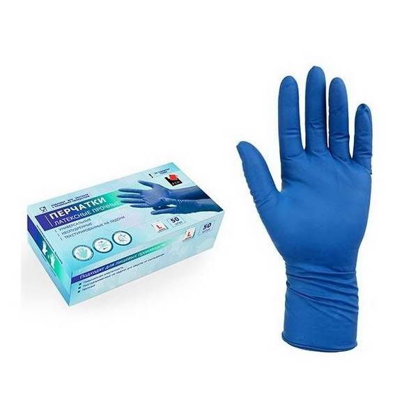 Перчатки латексные повышенной прочности High Risk М синие 1ПАРА