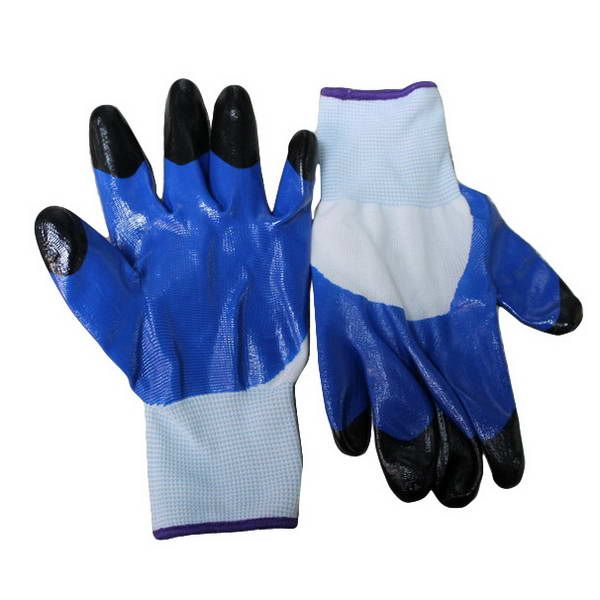 Перчатки нейлоновые Черные пальцы люкс синие