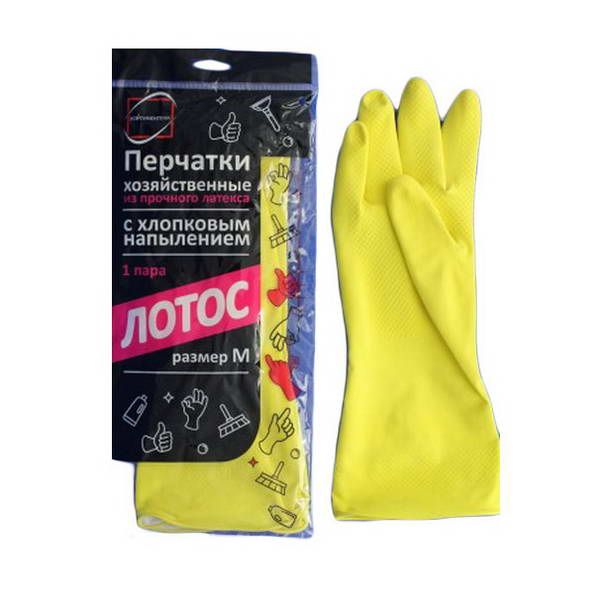 Перчатки резиновые Лотос ( L) прочный латекс хлопк напыление