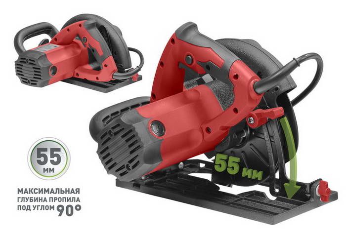 | Максимальная глубина пропила под углом 90°, мм: | 55 |