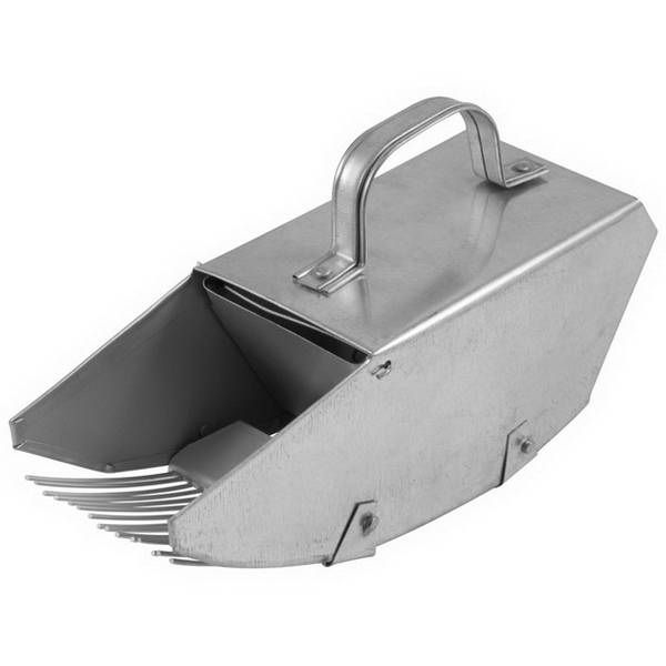 | Изделие выполнено из металла, с порошковым покрытием. Конструкция комбайна позволяет собирать ягоды клюквы, брусники, черники с наименьшим нанесением вреда для растения. |