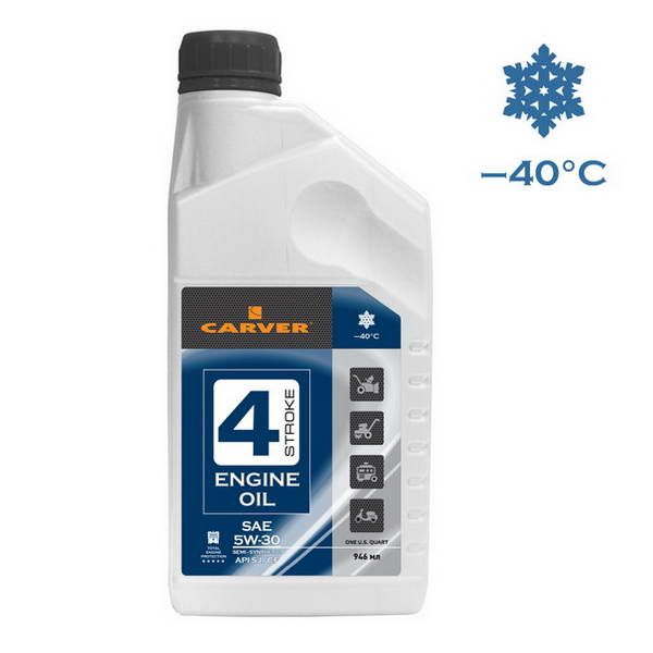 Всесезонное высокоэффективное полусинтетическое моторное масло Carver 4 Stroke Engine oil SAE 5W-30 для четырехтактных бензиновых и дизельных двигателей (мотоблоки, культиваторы, генераторы, скутеры, мини тракторы, снегоходы, снегоуборочные машины и пр.).