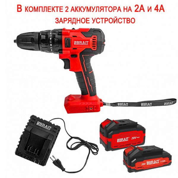 Шуруповерт Brait BCD20SU 20В (2 аккум, зарядное, коробка)