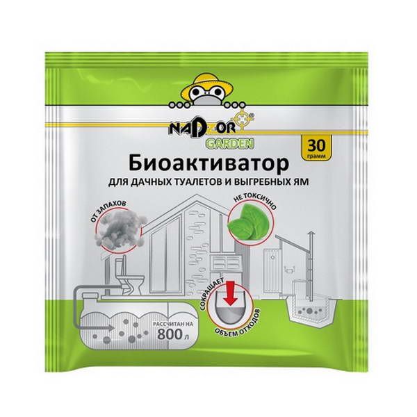 Препарат на биологической основе, предназначенный для очищения дачного туалета, выгребной ямы и септиков от нечистот и отходов жизнедеятельности человека. Средство изготовлено на базе почвенных микроорганизмов без добавления химически активных веществ, и способно переработать отходы жизнедеятельности человека за небольшой период времени.