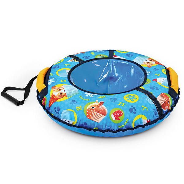 Красочный тюбинг из принтованной ткани подарит незабываемые впечатления от зимней прогулки. Водонепроницаемая ткань из которой изготовлена верхняя часть изделия, создаст дополнительное сопротивление и не позволит выскользнуть из тюбинга. А благодаря высококачественной тентовой ПВХ ткани с глянцевой поверхностью, из которой исполнено дно этой модели достигается идеальное скольжение. Усиленная камера входит в комплекте