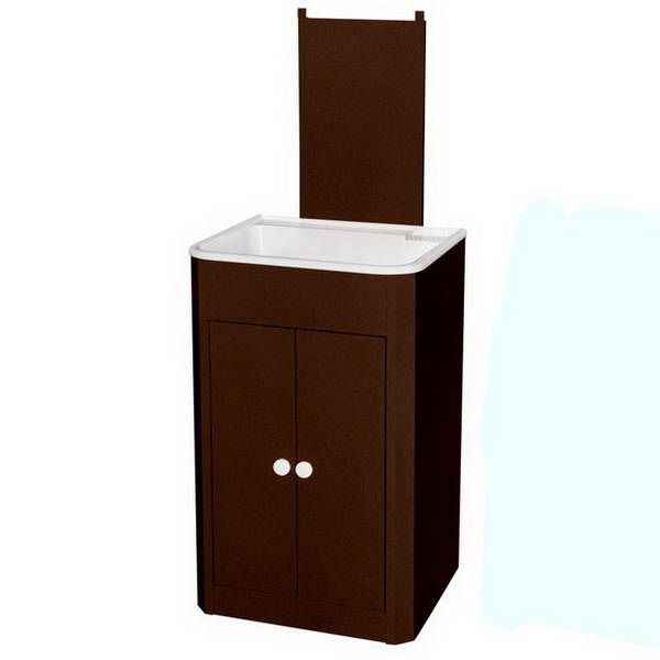 Разборная металлическая тумба с дверцами по фасаду, пластиковой раковиной, предназначена для установки в частном или дачном доме.
